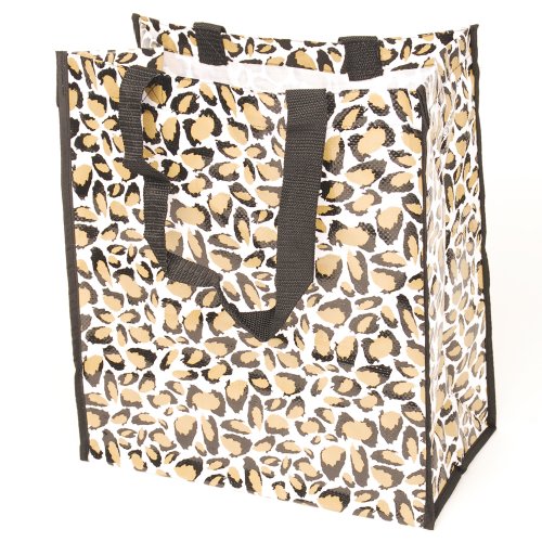 The Leopard design displays a pattern of an exotic species of our favorite fashion cat. At triple the size of a standard plastic grocery bag, this durable tote is ready for anything. Folds up flat, but stands up tall while you pack it. Just loop it over your shoulder and off you go!You will not be disappointed with