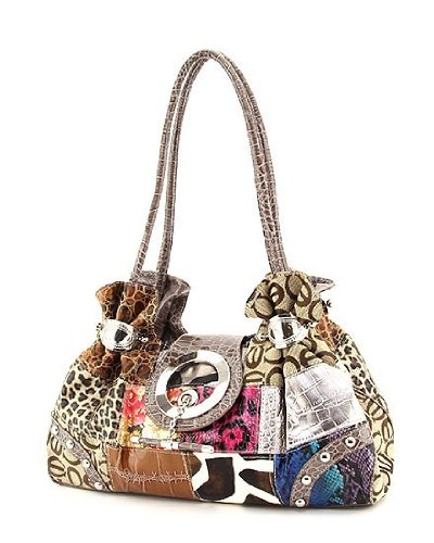"Buy Grey Signature Patchwork Designer Inspired Handbag" Overview